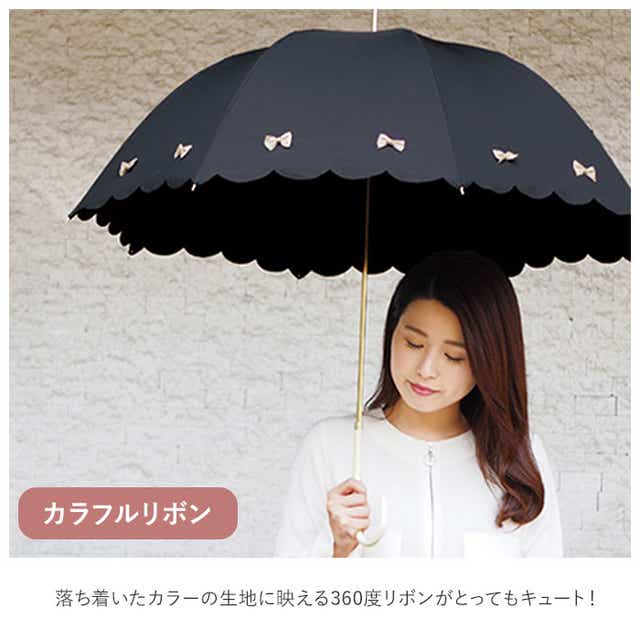 傘 レディース おしゃれ 通販 長傘 晴雨兼用傘 日傘 Uvカット グラスファイバー 軽量 雨 レイングッズ 耐風 丈夫 婦人傘 ジャンプ傘 かさ 梅雨 雨傘 大きめ ワンタッチ かさ 58cm 大人 かわいい スカラップパール ハートライン プチスター カラフルリボン フリル Bk